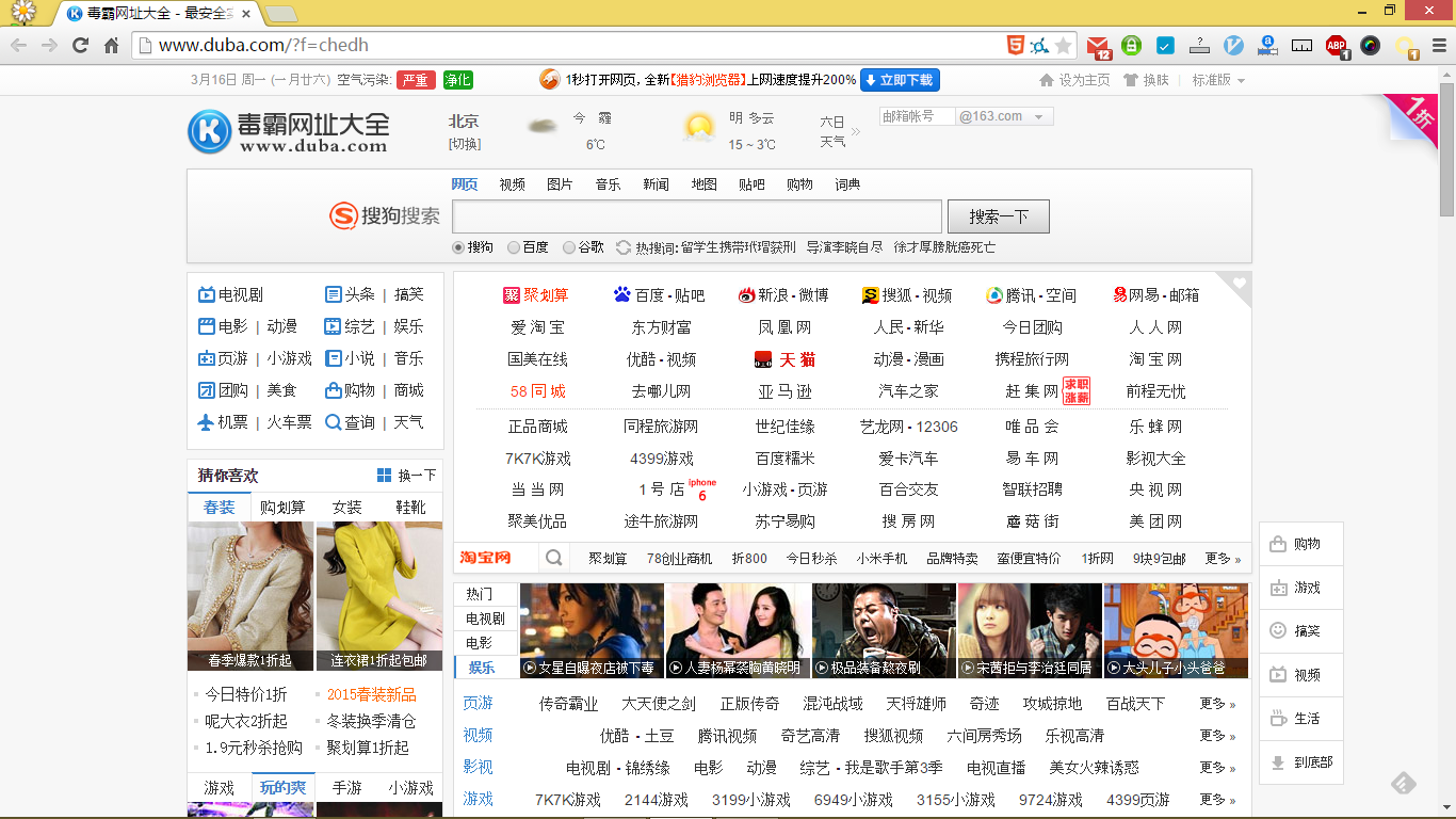 这是我的 Chrome 浏览器打开的样子:首页是 www.duba.com/?f=chedh,记住这个可耻的网址。