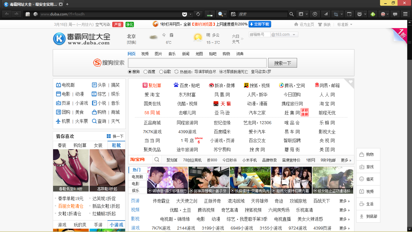 这是我的 Firefox 浏览器打开的样子:首页是 www.duba.com/?f=foxdh,也是一个可耻的URL。